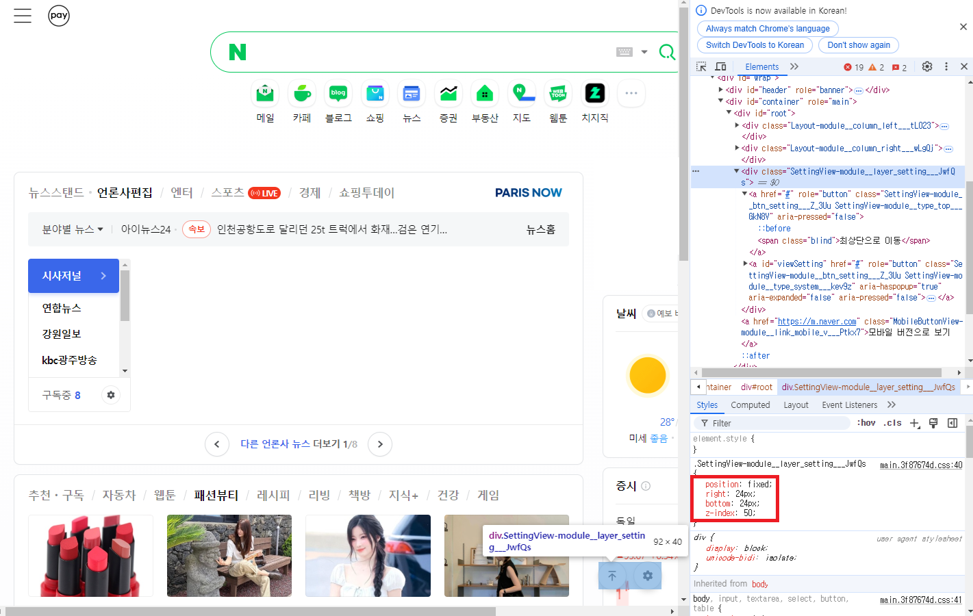- z-index는 요소들을 순서대로 위로 쌓는 속성. 숫자가 커질수록 위로 올라옴.