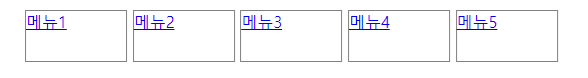 <li><a href="">메뉴1</a><a href="">메뉴2</a><a href="">메뉴3</a><a href="">메뉴4</a><a href="">메뉴5</a></li>