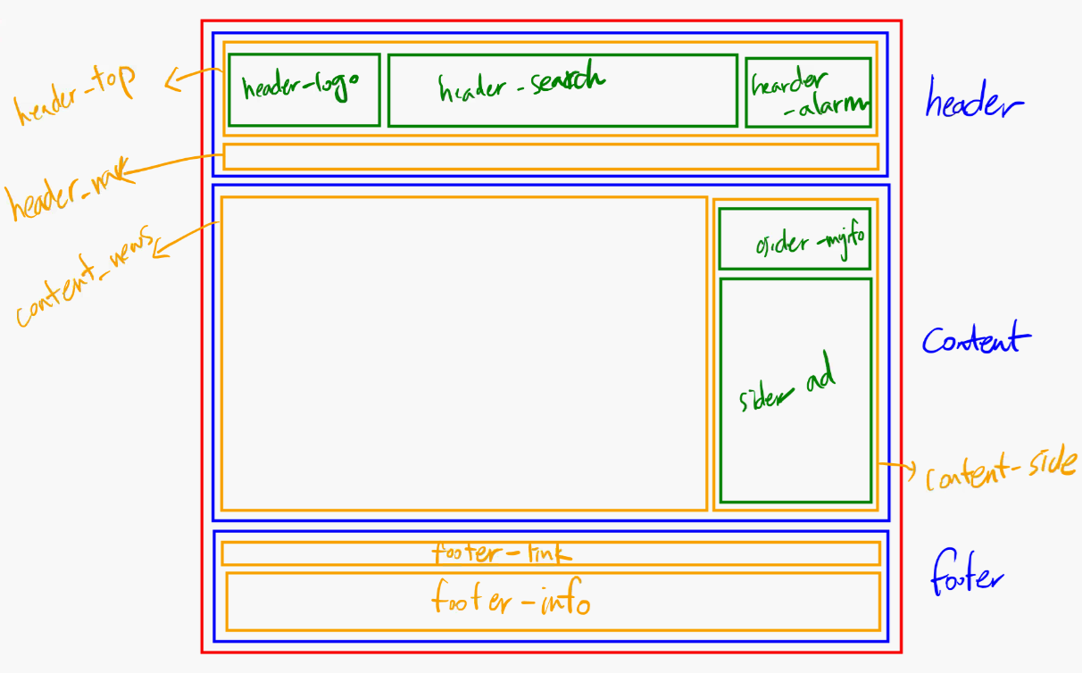 - content는 2등분하여 왼쪽은 content-news, 오른쪽은 content-side로 좌우 분리한다.