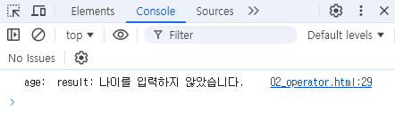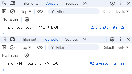 - 자바스크립트는 데이터가 존재할 경우 true로 간주하고, 데이터가 존재하지 않을 경우 false로 간주한다.