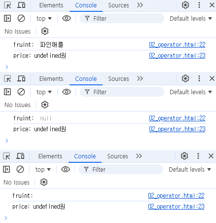 price && console.log('price:', price + '원'); // '원'해야 원을 문자열로 인식한다.