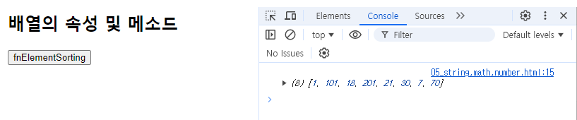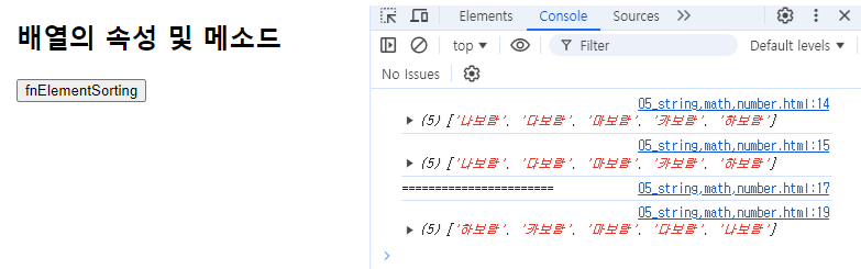 console.log(arr.sort()); // sort 메소드는 기본값 오름차순 정렬.