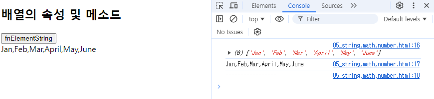 ㄴ 배열내의 요소들을 comma( , )와 함께 하나의 문자열로 합쳐서 반환