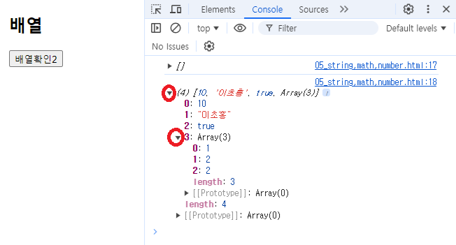 3번 인덱스는 배열이라 또 펼쳐볼 수 있다.