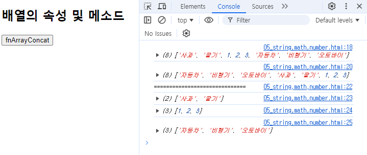 console.log(arr3); // concat 메소드는 원본배열에 영향을 미치지 않음.