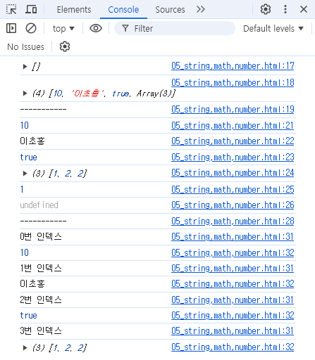 console.log(arr2[10]); // 부적적한 인덱스 제시시 undefined