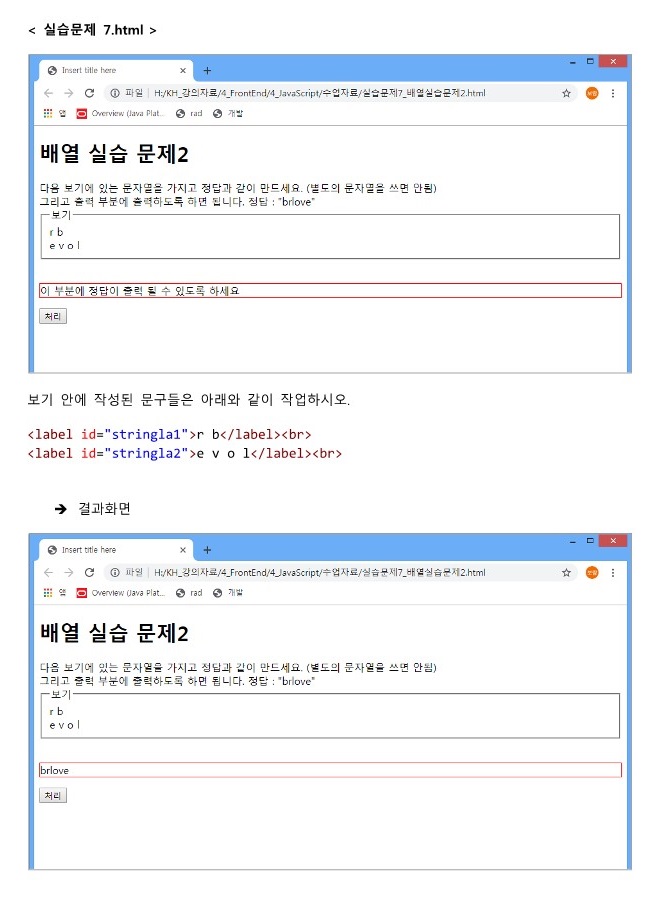 다음 보기에 있는 문자열을 가지고 정답과 같이 만드세요. (별도의 문자열을 쓰면 안됨) < br >