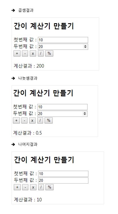 < div id = "result" > 계산결과 : </ div >