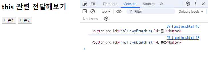 - this를 인자로 보내면 이 이벤트가 발생되는 요소 객체가 전달된다.