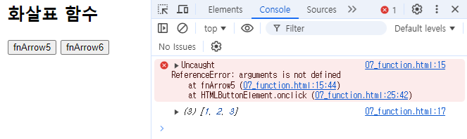 <button onclick="fnArrow5(1, 2, 3);">fnArrow5</button> // 오류 발생