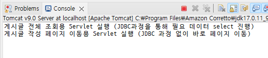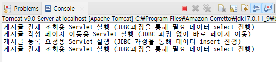 System.out.println("게시글 등록 요청용 Servlet 실행 (JDBC 과정을 통해 데이터 insert 진행)");