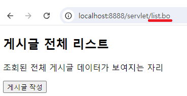 - 전체게시글 조회페이지는 /servlet/list.bo가 찍혀있어야 한다. 다른 url은 안 된다.