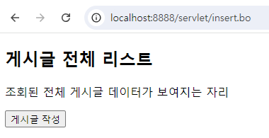 - 그런데 이건 잘못된 방식이다. 전체 리스트 화면에는 항상 list.bo가 찍혀있어야 하는데 insert.bo가 찍혀있다.