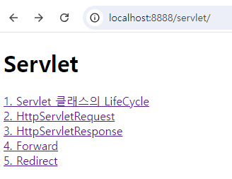 - jdbc 과정 없이 그냥 페이지 이동만 있는 서블릿 클래스다.