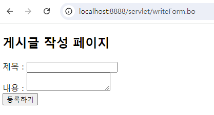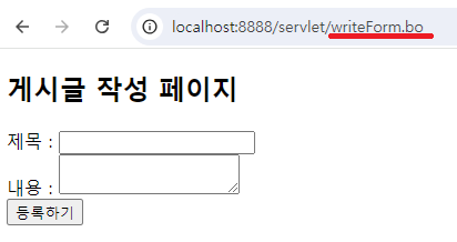 게시글 작성페이지는 /servlet/writeForm.bo가 찍혀있어야 한다.