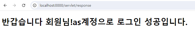 out.println("<h1>반갑습니다 회원님!" + userId + "계정으로 로그인 성공입니다.</h1>");