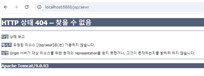 - 브라우저 주소창에 localhost:8888/jsp/aewr 이렇게 아무렇게나 검색해본다.