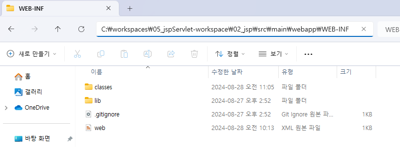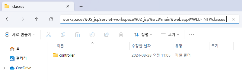 - webapp 폴더의 WEB-INF 폴더에는 classes폴더가 있다.