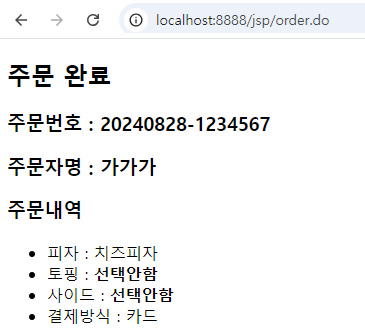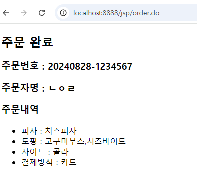 ㅁ d_pizza 폴더에 아래와 같이 result.jsp를 만든다.