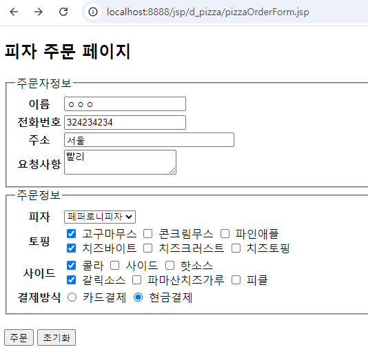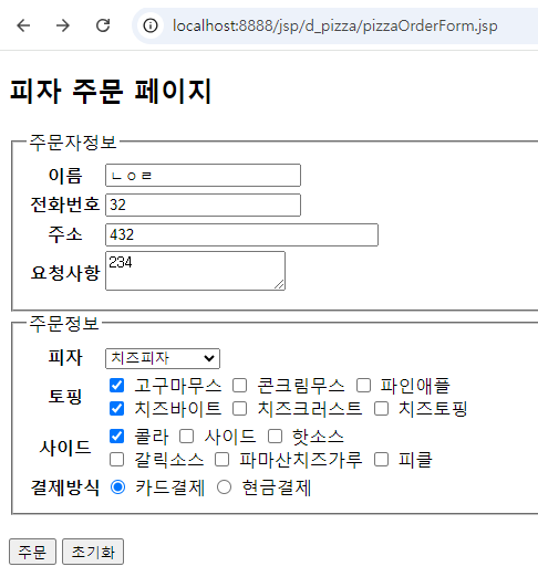 - webapp > d_pizza > pizzaOrderForm.jsp를 아래와 같이 작성한다.
