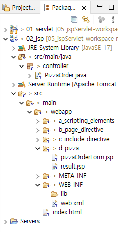 - 이클립스에서 webapp 폴더 아래에 d_pizza 폴더를 만들고, 그 폴더 안에 pizzaOrderForm.jsp 파일을 만든다.
