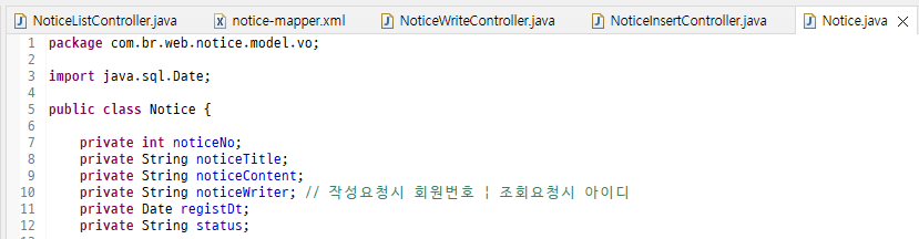 - noticeList.jsp의 테이블에서 List<Notice> list를 사용하고 있다.