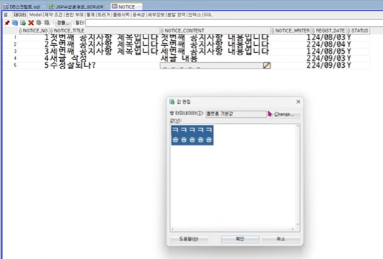 - 공지사항 수정페이지에서 textarea 안에 내용을 두 줄로 작성했다.