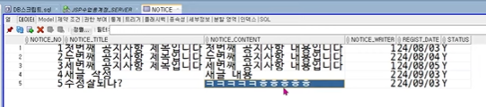 - 서블릿에서 응답페이지인 "공지사항 수정페이지"로 '글번호', '글제목', '글내용'을 보내줘야 한다.
