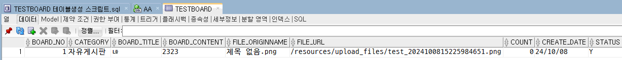 - 첨부파일 테이블이 따로 있지 않고, 한 테이블에 첨부파일관련 컬럼이 있다.