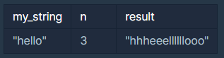 문자열 my_string과 정수 n이 매개변수로 주어질 때, my_string에 들어있는 각 문자를 n만큼 반복한 문자열을 return 하도록 solution 함수를 완성해보세요.