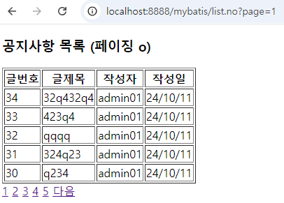 <h3>공지사항 목록 (페이징 o)</h3>