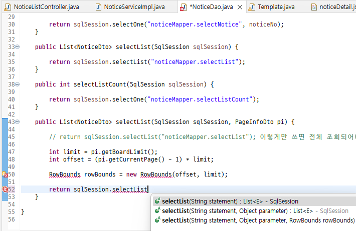 List<NoticeDto> list = noticeDao.selectList(sqlSession, pi);