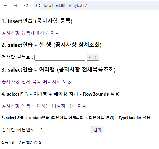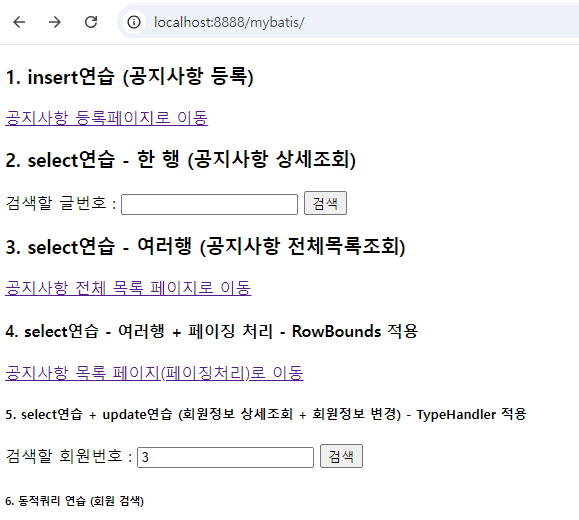 - "5. select연습 + update연습 (회원정보 상세조회 + 회원정보 변경) - TypeHandler 적용" 부분을 작성했다.