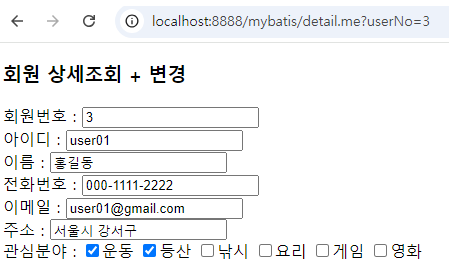 <h5>5. select연습 + update연습 (회원정보 상세조회 + 회원정보 변경) - TypeHandler 적용</h5>