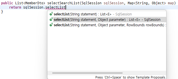 List<MemberDto> searchList = new MemberServiceImpl().selectSearchList(map);