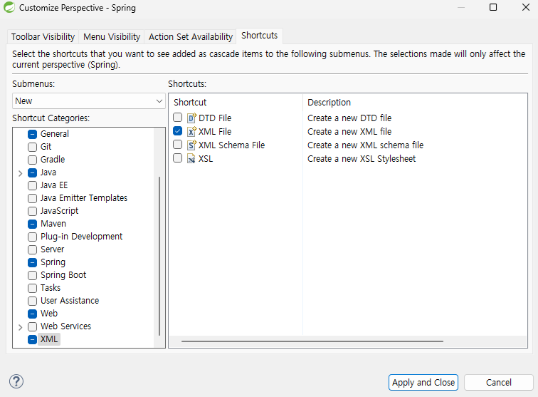 - XML은 체크되어있지 않은데 XML File 체크한다.