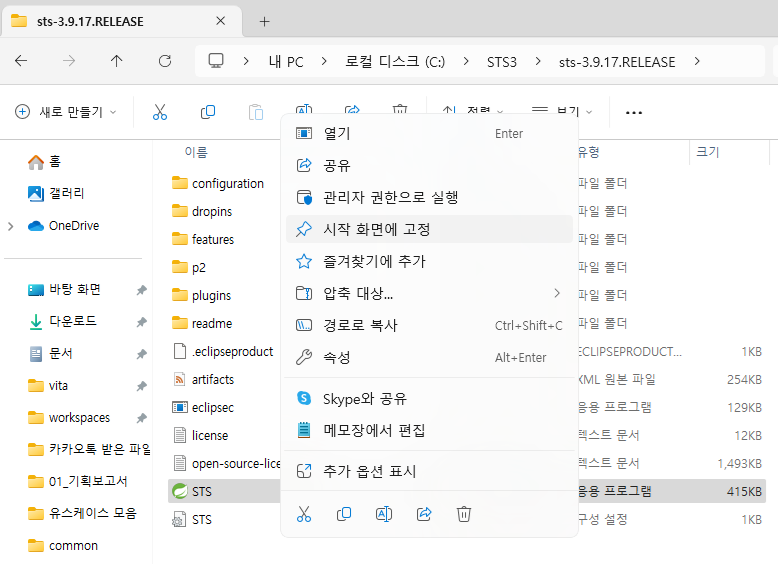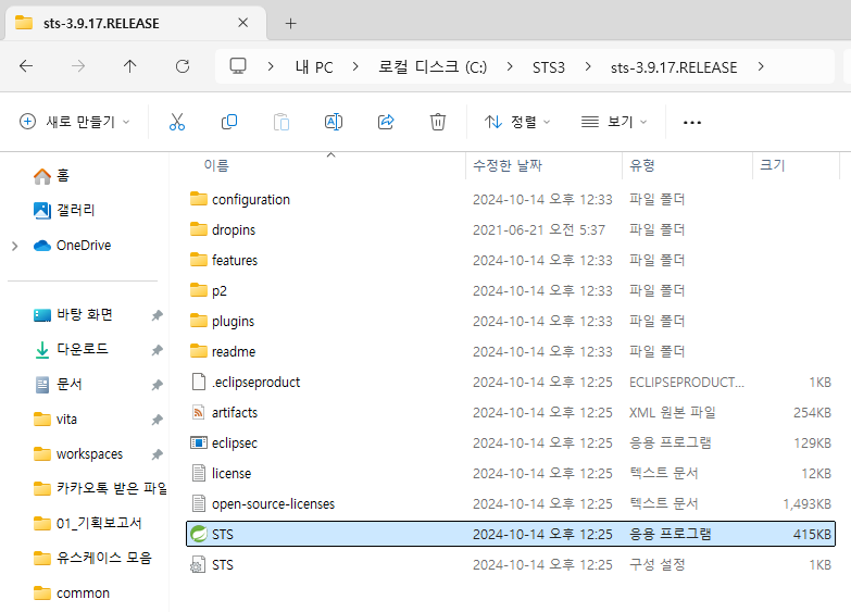 - C:\STS3\sts-3.9.17.RELEASE로 와서 다시 STS를 실행한다.