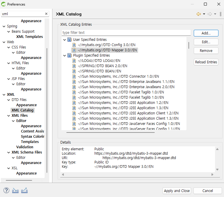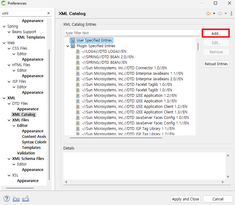 - XML Catalog를 등록한다.