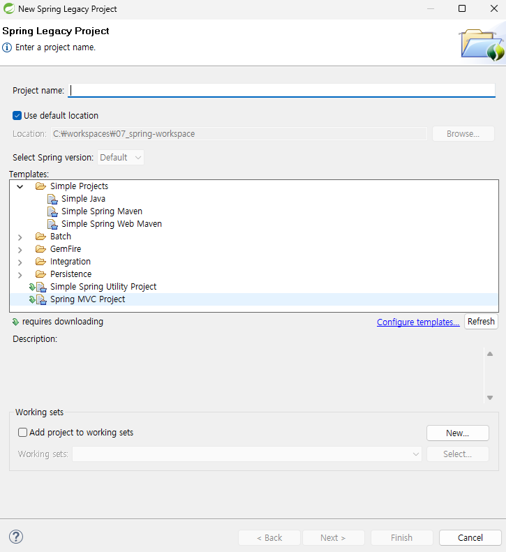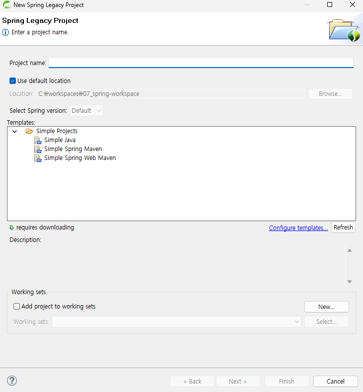 - C:\workspaces에 07_spring-workspace라는 폴더를 만든다.