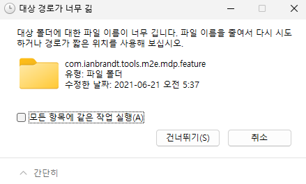 - 경로가 너무 길어서 압축을 풀 때 오류가 날 수 있다.