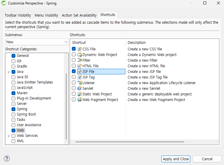 - 오른쪽 상단을 보면 Java EE가 아닌 Spring 환경으로 되어있다. Spring 관련 파일들을 만들 수 있다.