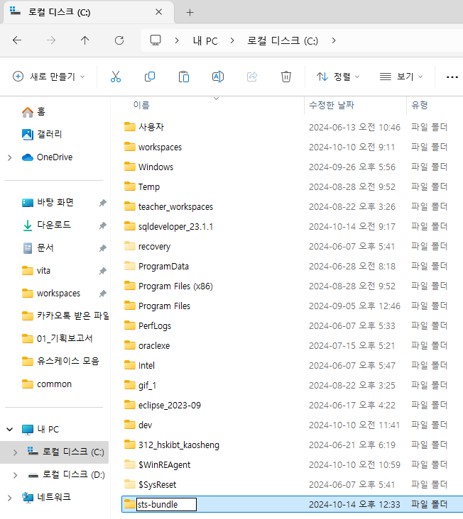- sts-bundle을 복사해서 c 드라이브에 붙여넣기 한다.