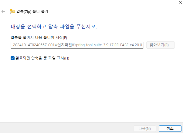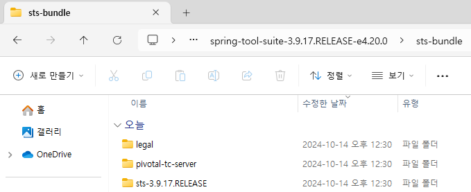 - spring-tool-suite-3.9.17.RELEASE-e4.20.0 파일의 압축을 푼다.