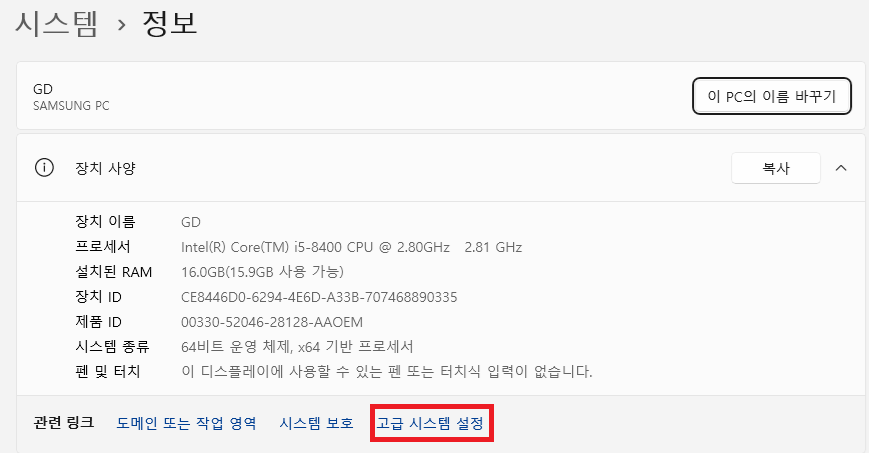 ㅁ 내pc 우클릭 속성 - 고급시스템 설정 - 환경변수