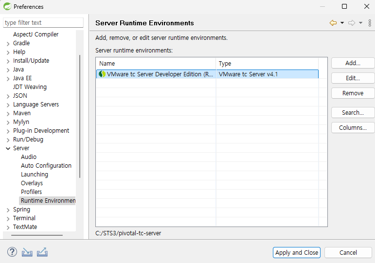 - Window - preferences - Server - Runtime Environments