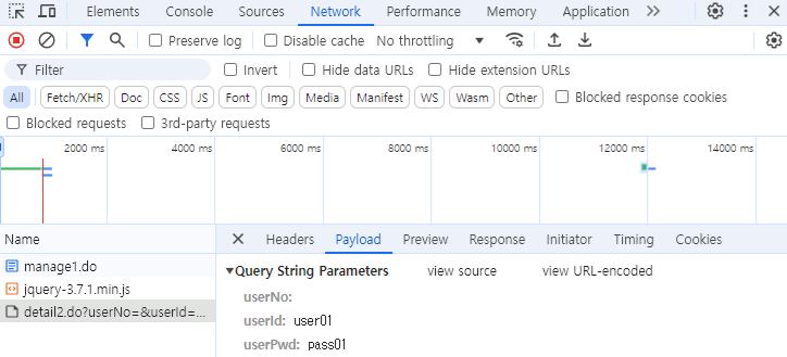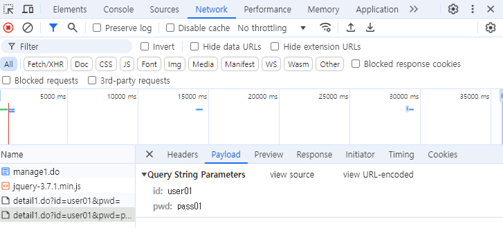 - 개발자 도구의 Network탭에서 각 요청을 클릭한다.