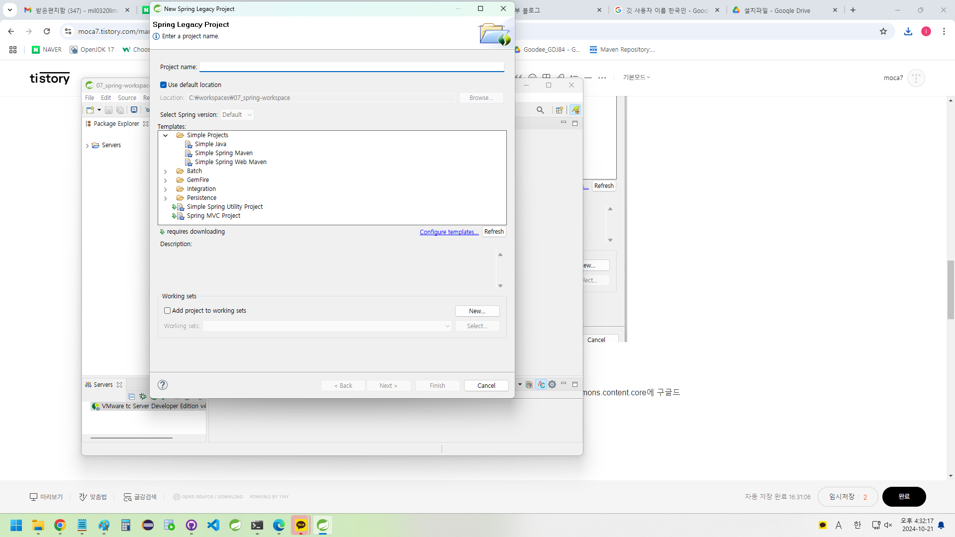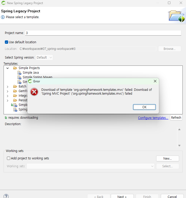 - C:\workspaces\07_spring-workspace\.metadata\.sts\content\org.springframework.templates.mvc-3.2.2 원래 여기에 파일이 다운받아져야되는데 안됐다.