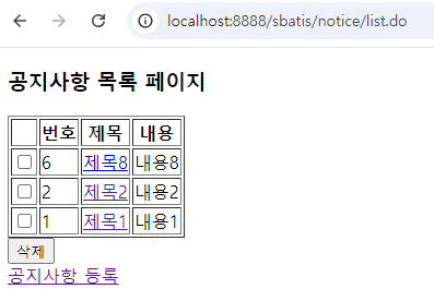 ㅁ 서버키고 목록페이지 - 상세페이지 - 뒤로가기 - 등록페이지에서 제목과 내용입력하고 등록(자동으로 목록페이지)