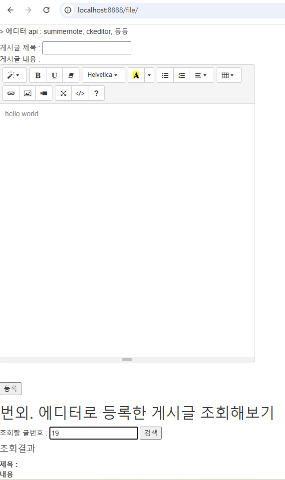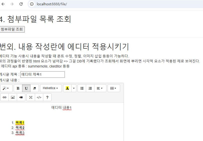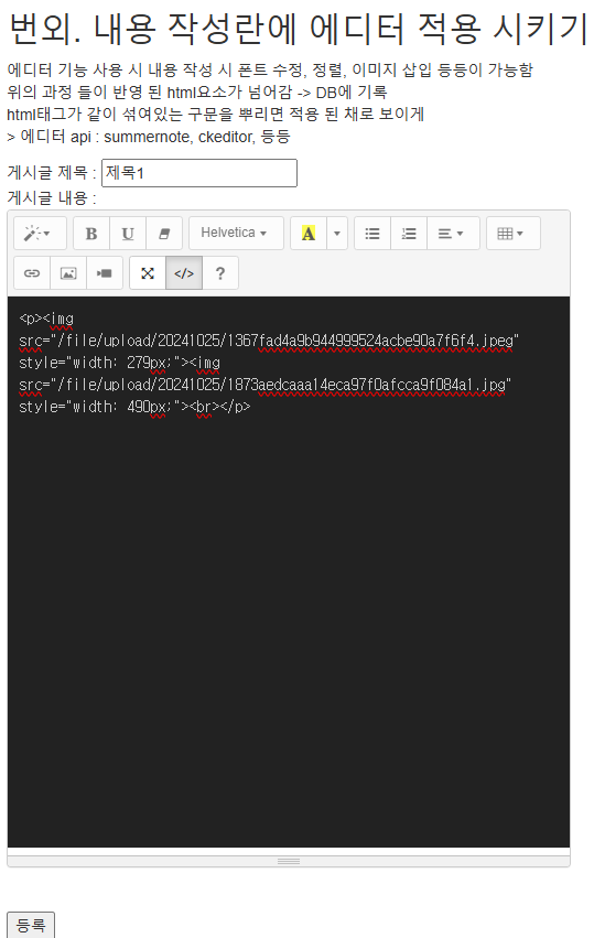 - 에디터 api 종류 : summernote, ckeditor 등등