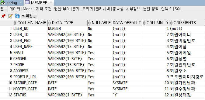 COMMENT ON COLUMN MEMBER.MODIFY_DATE IS '회원수정날짜';